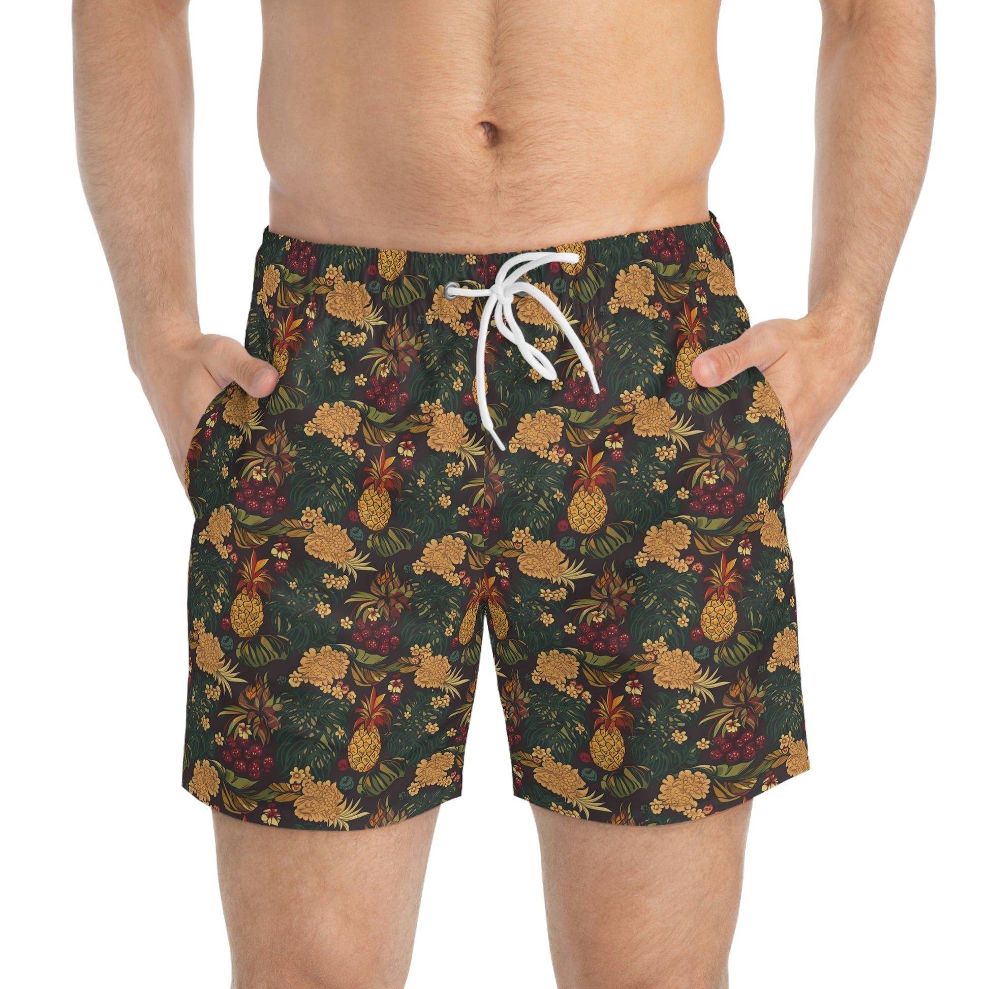 Nothing can swoosh down the summer heat like a dive into the sea - or into the nearest pool. These personalized swim trunks are here to take on your exclusive designs and most playful patterns. With an all-over-print capability accompanied by vivid colors, these swim trunks help you conquer the summer in custom style.