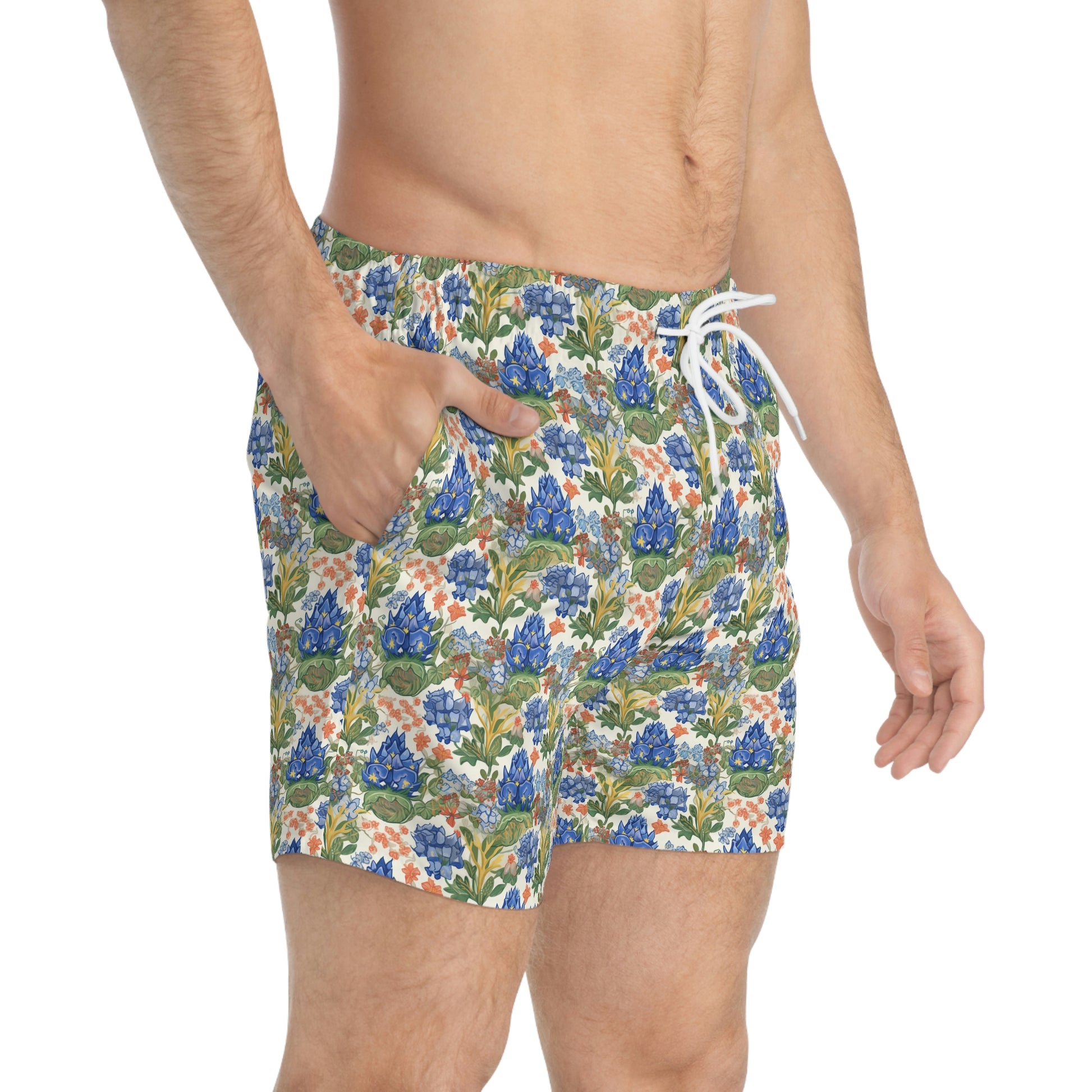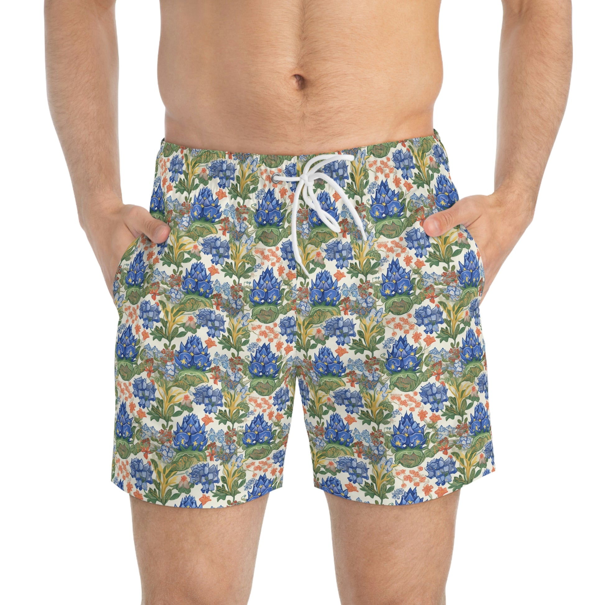 Nothing can swoosh down the summer heat like a dive into the sea - or into the nearest pool. These personalized swim trunks are here to take on your exclusive designs and most playful patterns. With an all-over-print capability accompanied by vivid colors, these swim trunks help you conquer the summer in custom style.