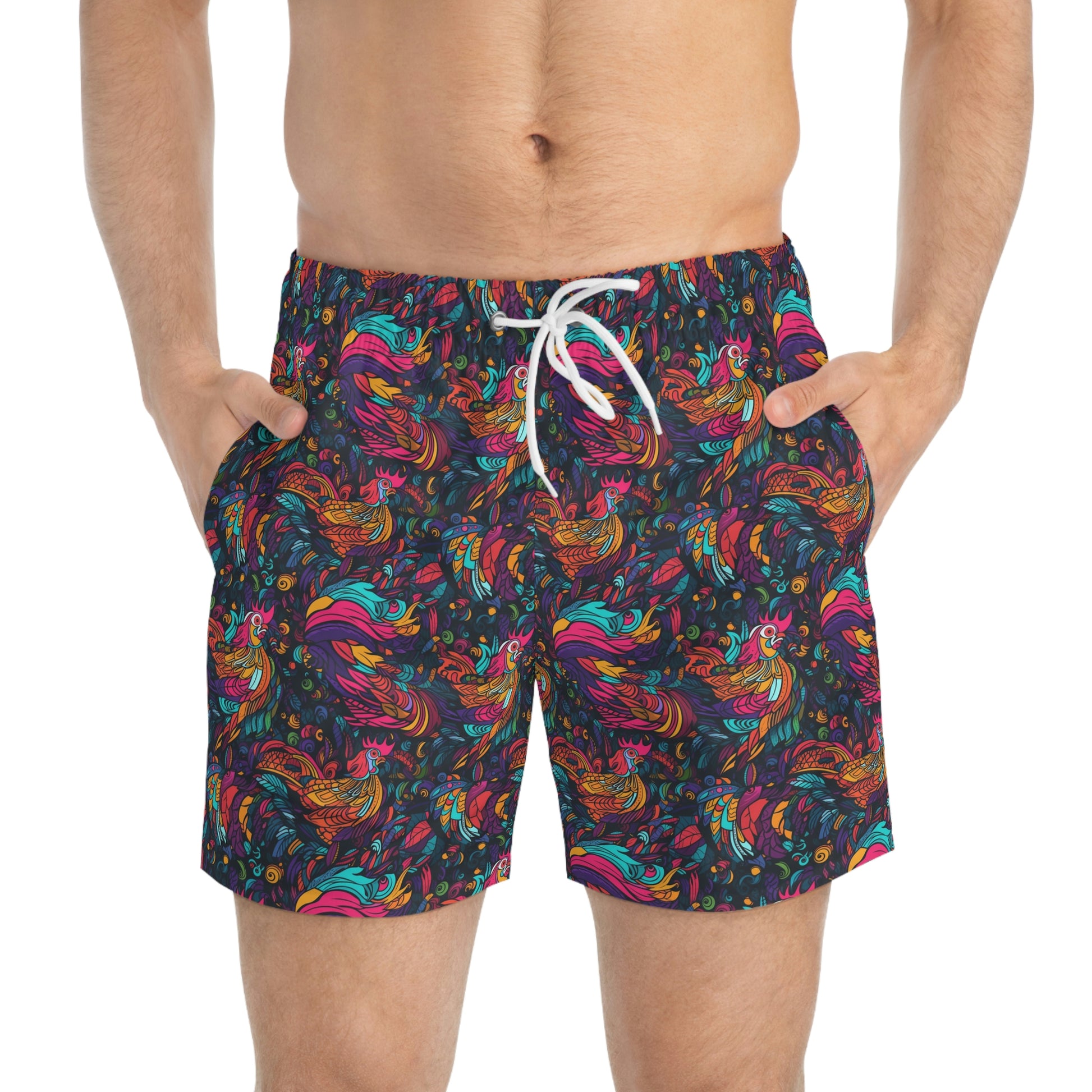 Nothing can swoosh down the summer heat like a dive into the sea - or into the nearest pool. These personalized swim trunks are here to take on your exclusive designs and most playful patterns. With an all-over-print capability accompanied by vivid colors, these swim trunks help you conquer the summer in custom style.
