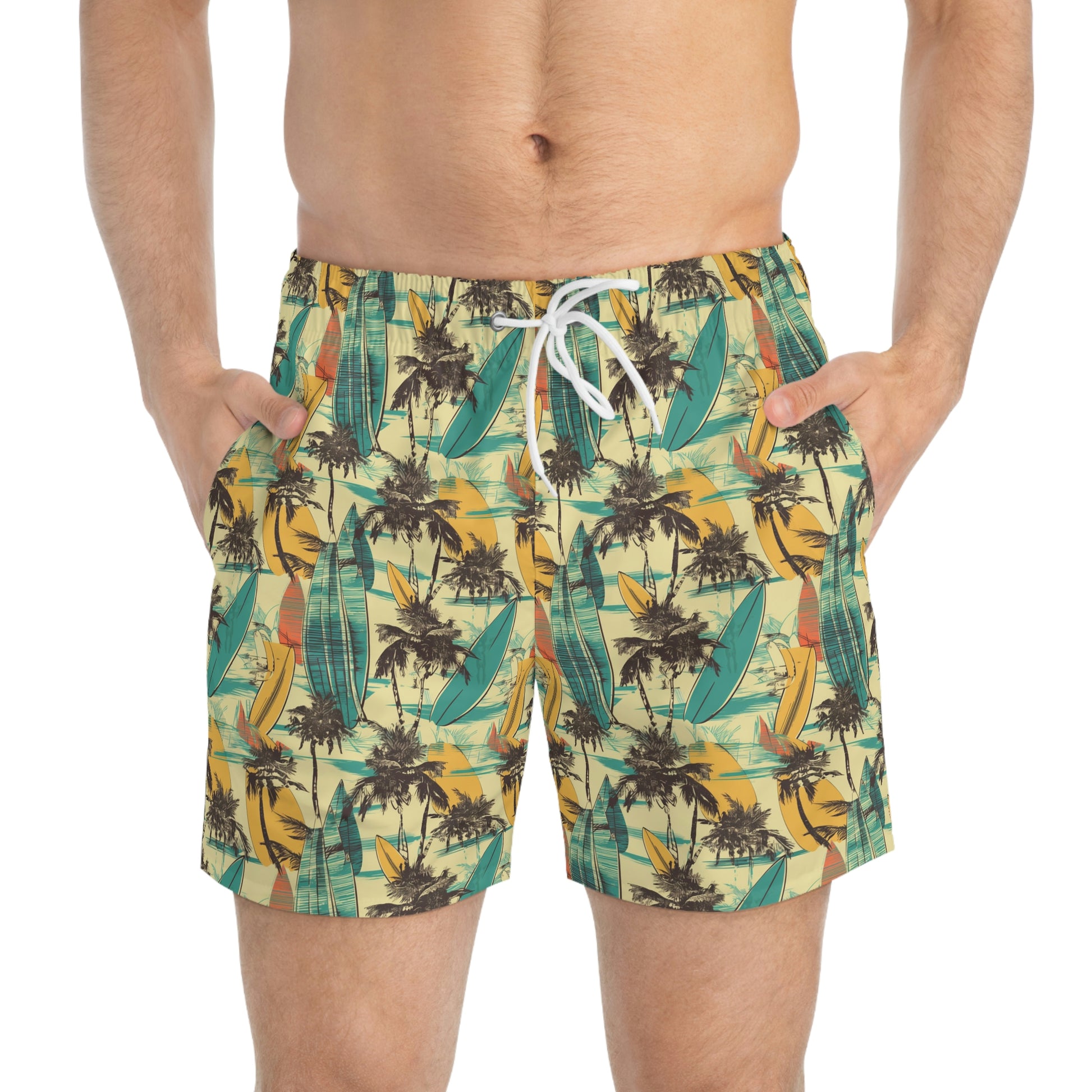 Nothing can swoosh down the summer heat like a dive into the sea - or into the nearest pool. These personalized swim trunks are here to take on your exclusive designs and most playful patterns. With an all-over-print capability accompanied by vivid colors, these swim trunks help you conquer the summer in custom style.