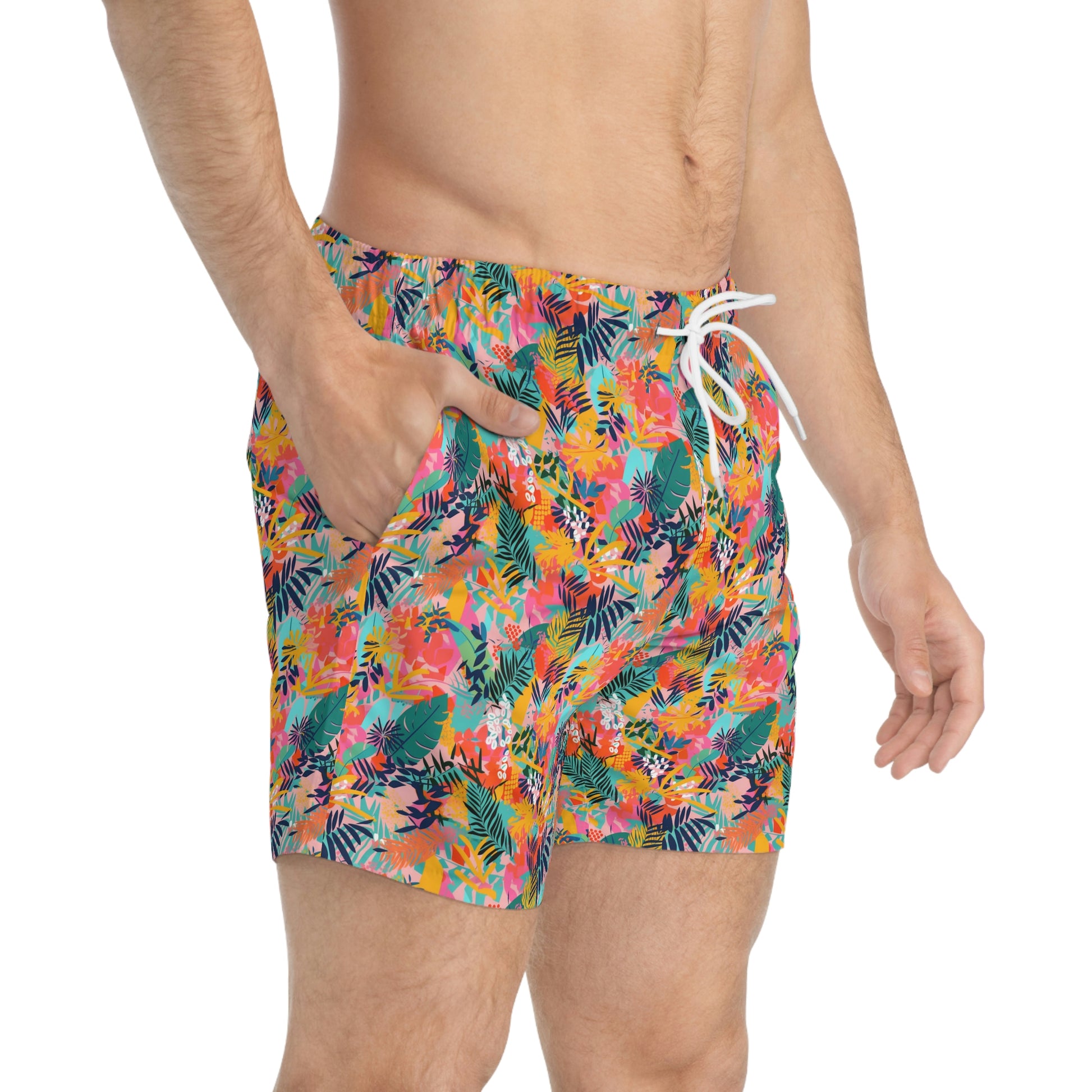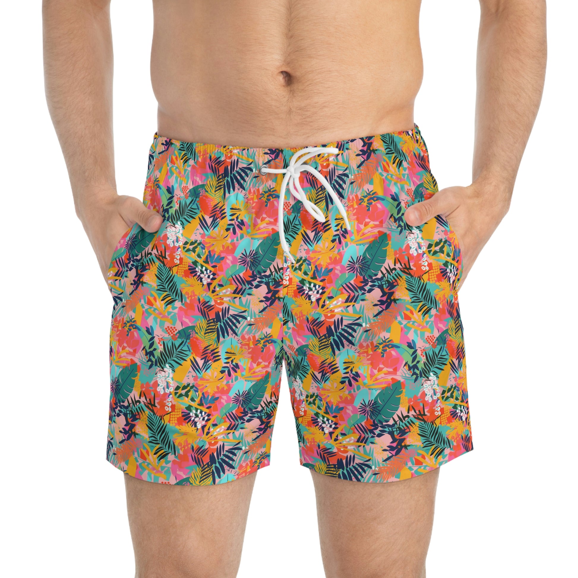 Nothing can swoosh down the summer heat like a dive into the sea - or into the nearest pool. These personalized swim trunks are here to take on your exclusive designs and most playful patterns. With an all-over-print capability accompanied by vivid colors, these swim trunks help you conquer the summer in custom style.