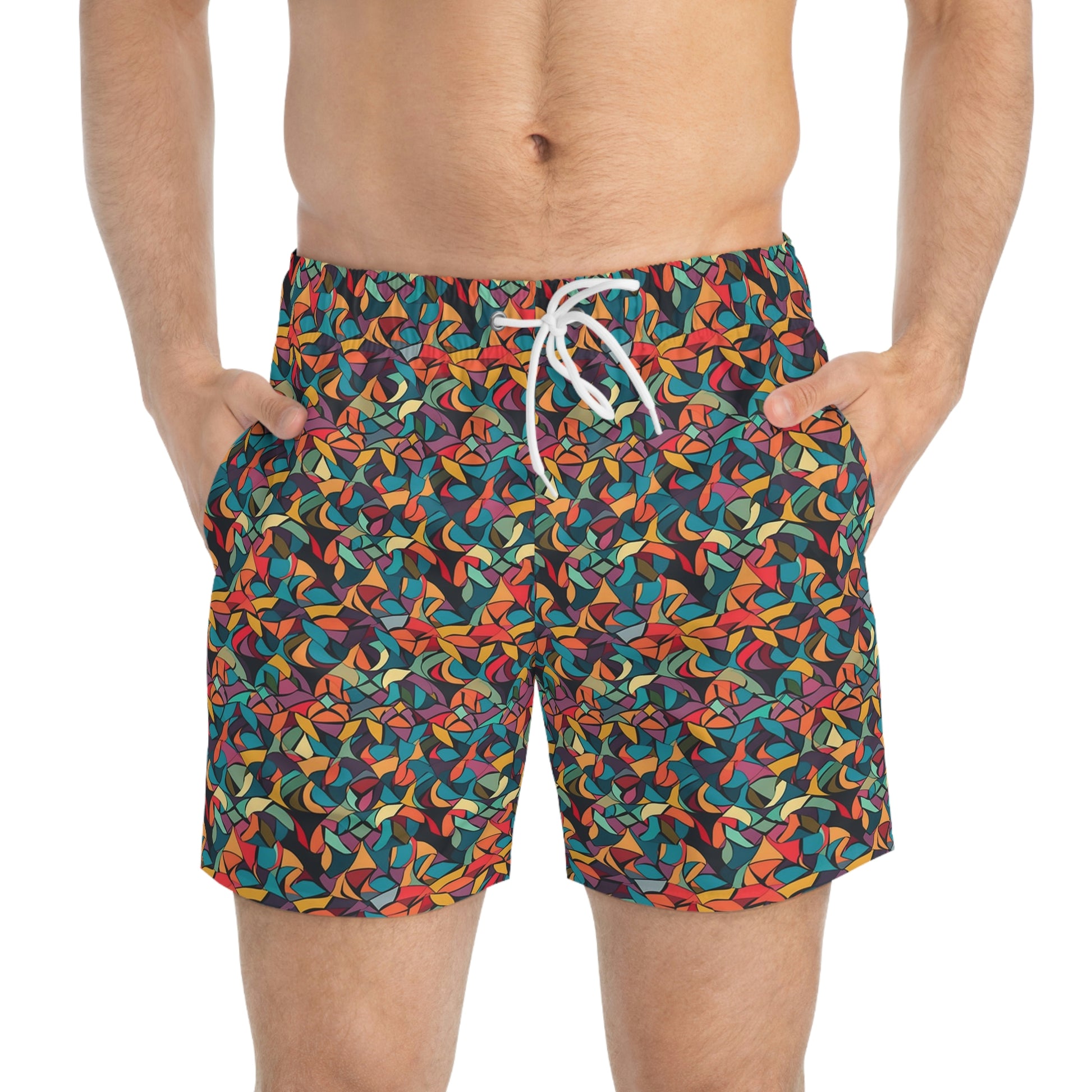 Nothing can swoosh down the summer heat like a dive into the sea - or into the nearest pool. These personalized swim trunks are here to take on your exclusive designs and most playful patterns. With an all-over-print capability accompanied by vivid colors, these swim trunks help you conquer the summer in custom style.