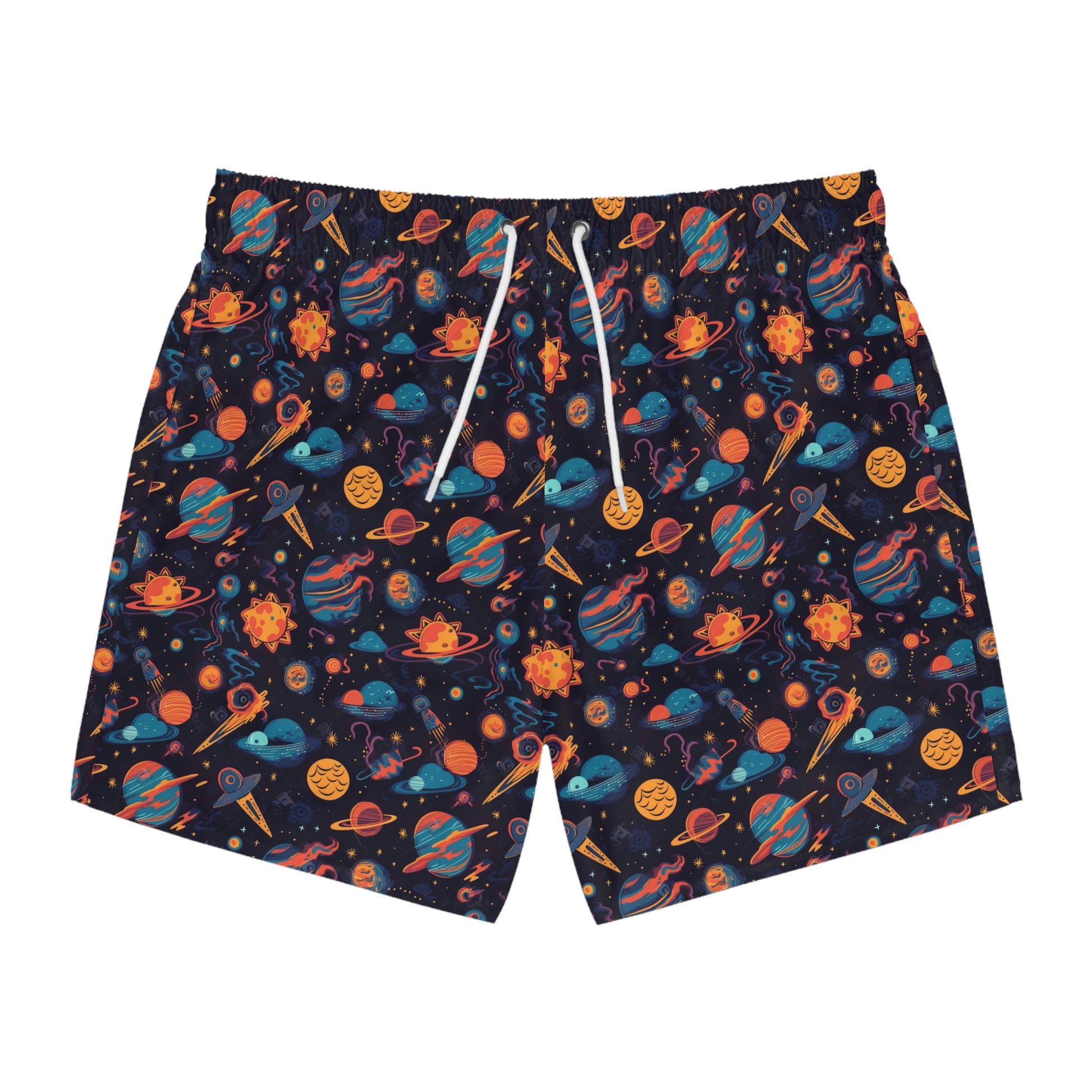 Nothing can swoosh down the summer heat like a dive into the sea - or into the nearest pool. These personalized swim trunks are here to take on your exclusive designs and most playful patterns. With an all-over-print capability accompanied by vivid colors, these swim trunks help you conquer the summer in custom style.