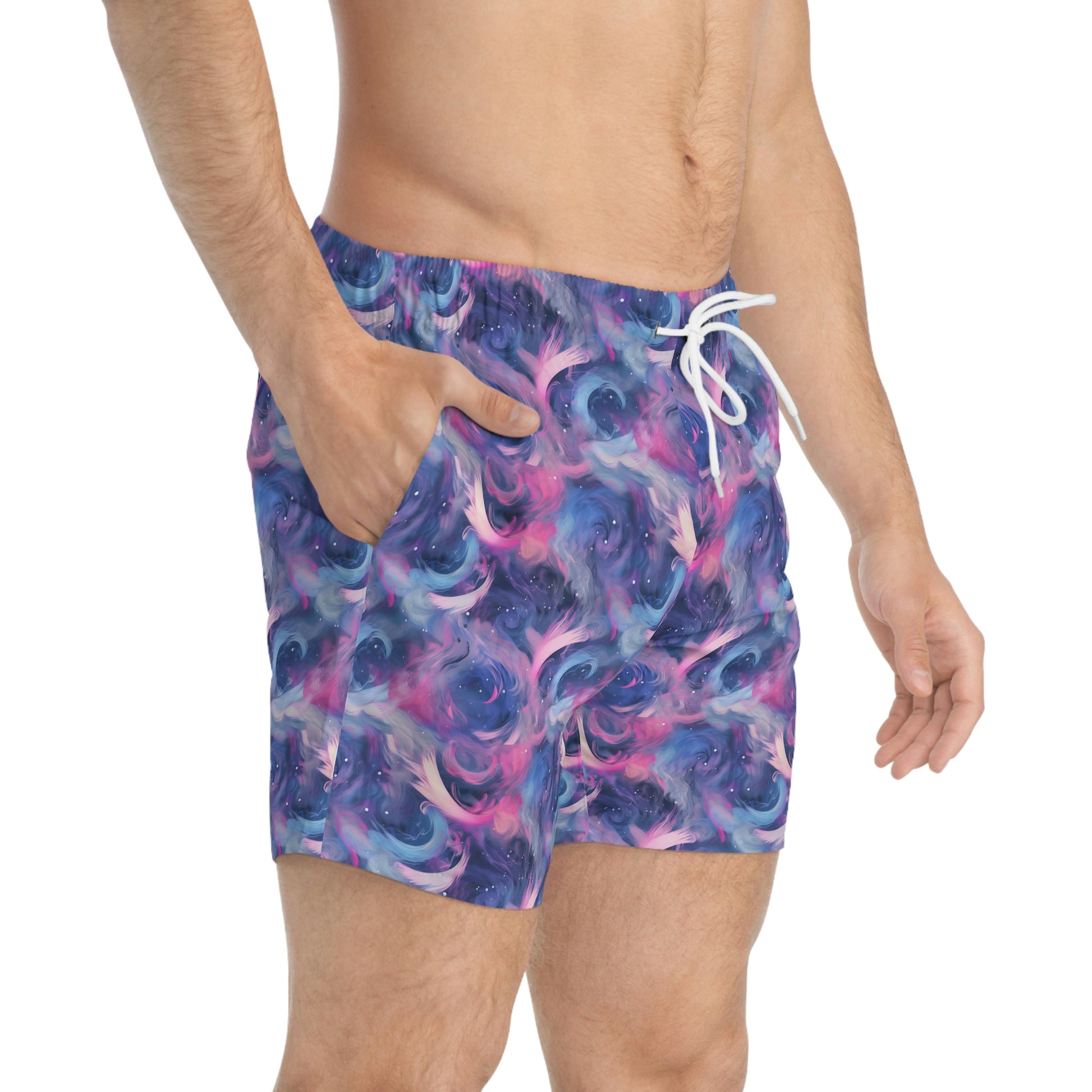 Nothing can swoosh down the summer heat like a dive into the sea - or into the nearest pool. These personalized swim trunks are here to take on your exclusive designs and most playful patterns. With an all-over-print capability accompanied by vivid colors, these swim trunks help you conquer the summer in custom style.