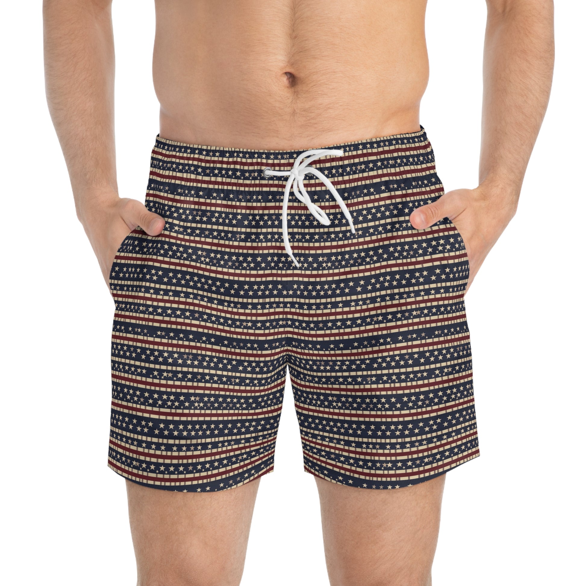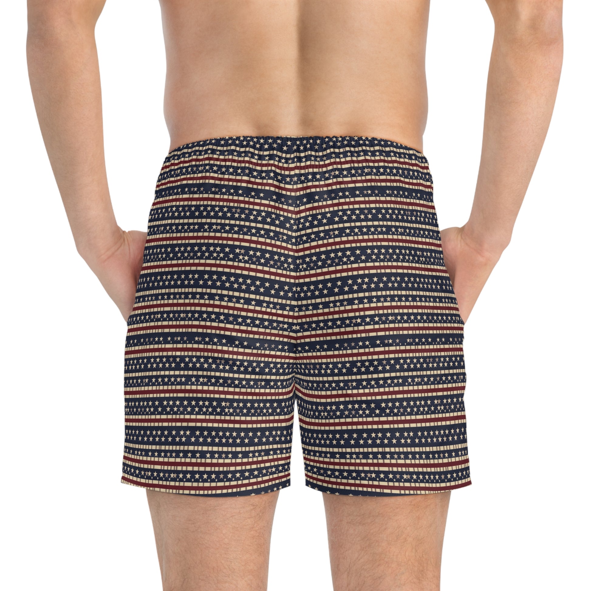 Nothing can swoosh down the summer heat like a dive into the sea - or into the nearest pool. These personalized swim trunks are here to take on your exclusive designs and most playful patterns. With an all-over-print capability accompanied by vivid colors, these swim trunks help you conquer the summer in custom style.